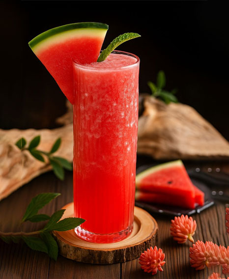 Fresh watermelon juice, made from naturally sweet and hydrating melons, offers a burst of cool refreshment in every sip. Rich in antioxidants and electrolytes, it helps keep your body hydrated and energized. A light, delicious drink—perfect for beating the heat and staying refreshed.