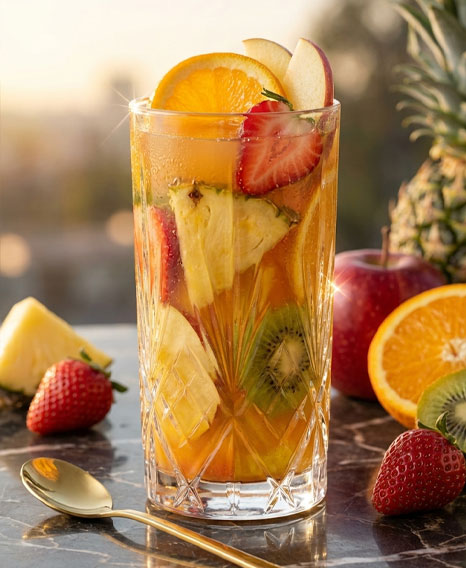 Mixed fruit juice blended from a variety of fresh, seasonal fruits delivers a burst of flavors in every sip. Rich in vitamins, antioxidants, and natural energy and overall wellness. A colorful, refreshing drink that gives you the goodness of many fruits in one glass.